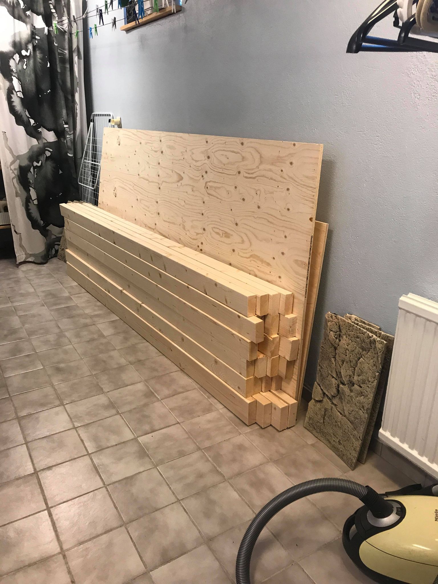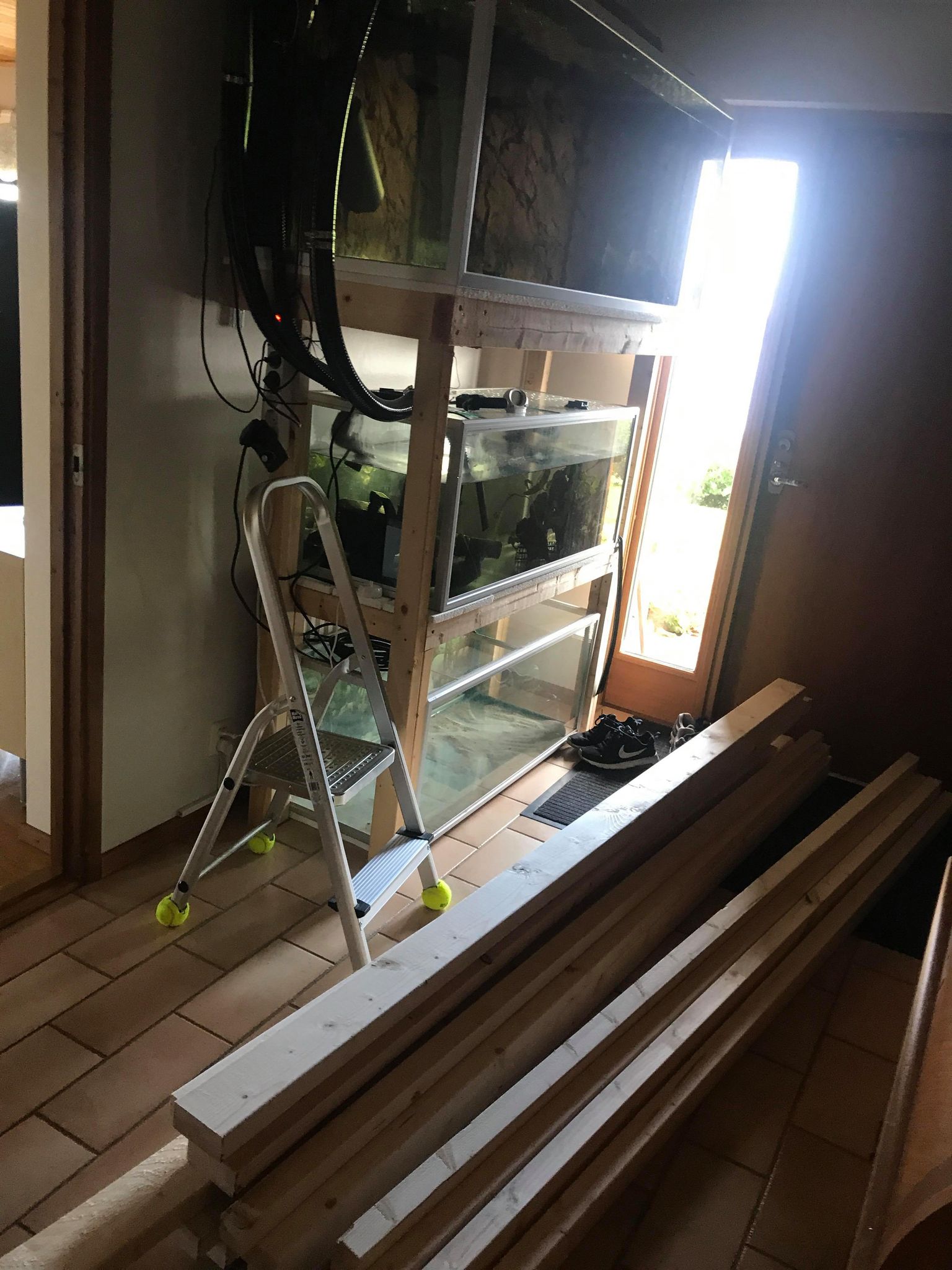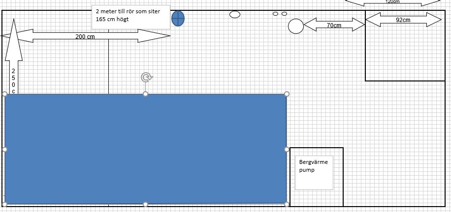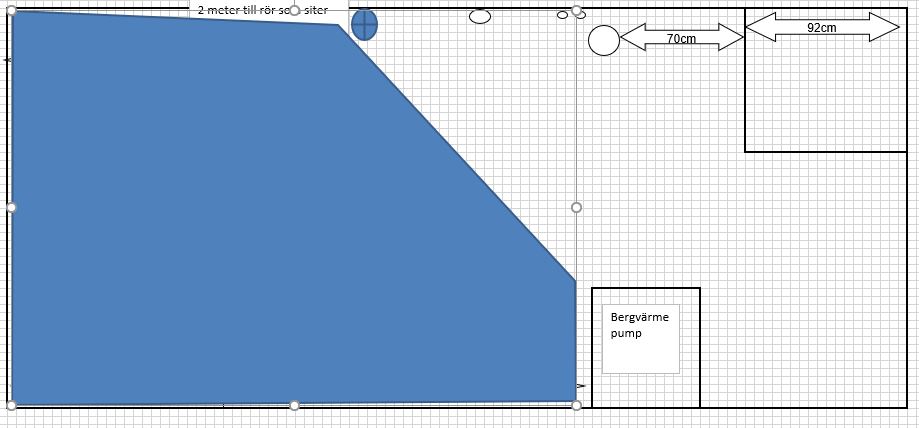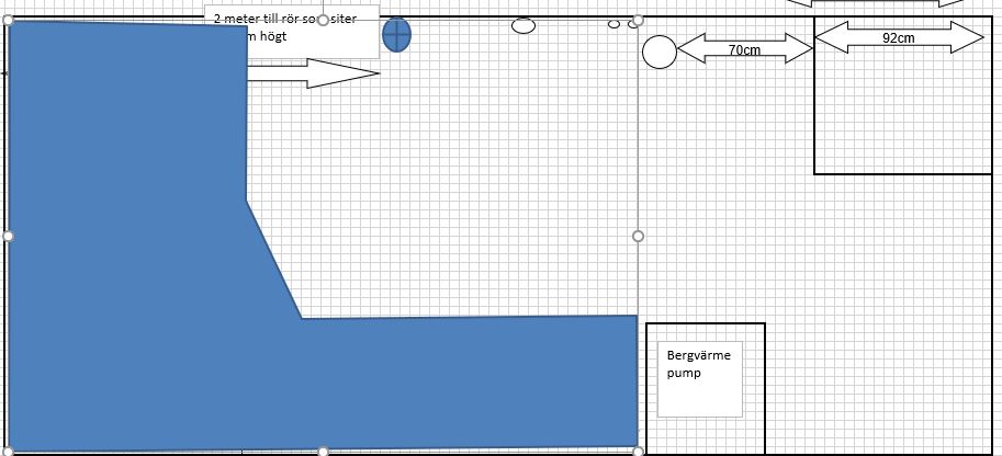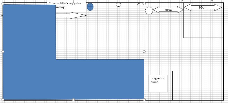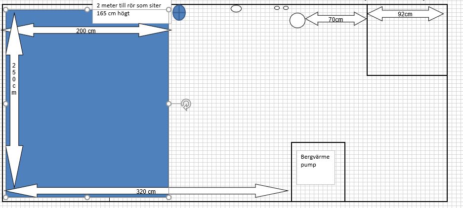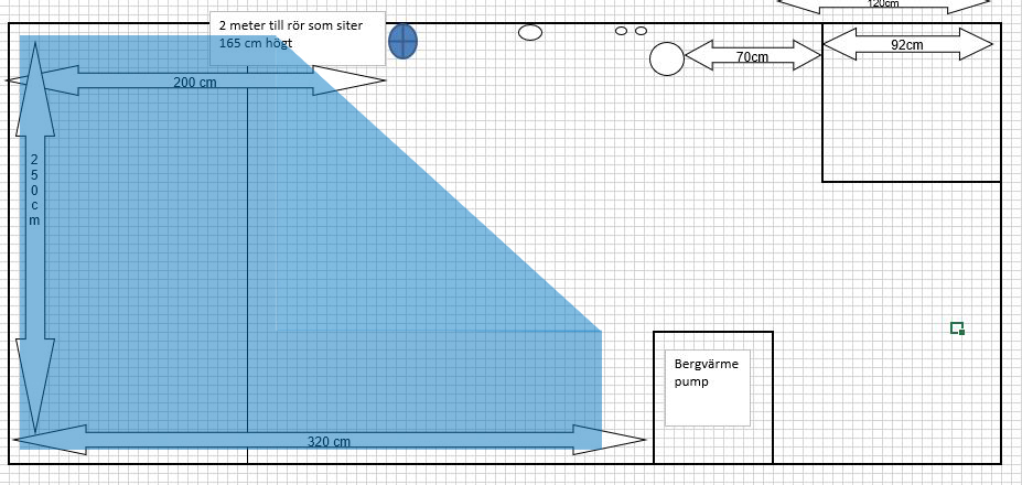 Men åter igen, det är ju vad man själv prioriterar. Jag hade personligen inte velat ha ett akvarium där jag gick och störde mig på att insynsvinkeln är skev, riktad mot ena sidan av rummet, där man missar delar av insidan av akvariet pga måtten, oavsett hur stort det var... Framför allt inte när det är så små marginaler i rummet. Jag brukar försöka prioritera helheten när jag planerar/bygger kar, dvs hur själva akvariet ser ut, hur det passar in i rummet, hur enkelt man kan komma åt allting inuti akvariet och själva filtreringen, hur trångt blir det i rummet, osv... Men om det inte är prioriterat för din del, så säger jag bygg så stort du kan helt enkelt! ?Slänger upp en bild på hur jag hade gjort, om jag hade kört på så stor volym som möjligt. Ungefär som du tänkt, men att man sparar ett bra avstånd från sakerna i rummet som står i vägen, åter igen för att det inte ska bli för trångt.