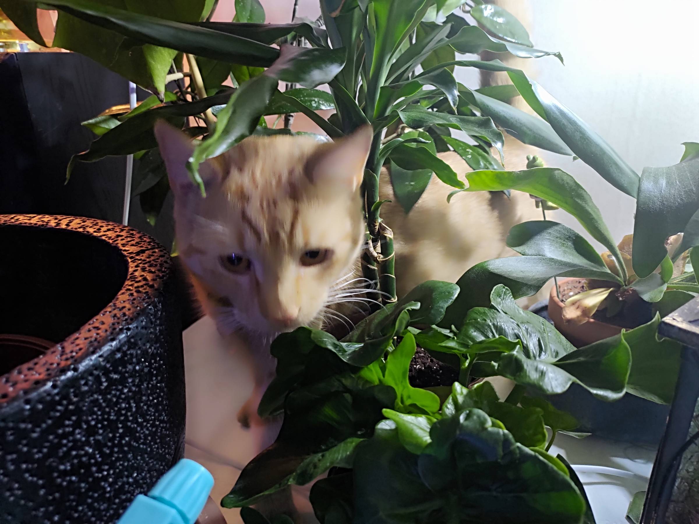 Jag har inte katter men min kära mor har 4 katter och med mina växter som bor där tillfälligt så har hon nog nånstans runt 1000 olika arter av växter.