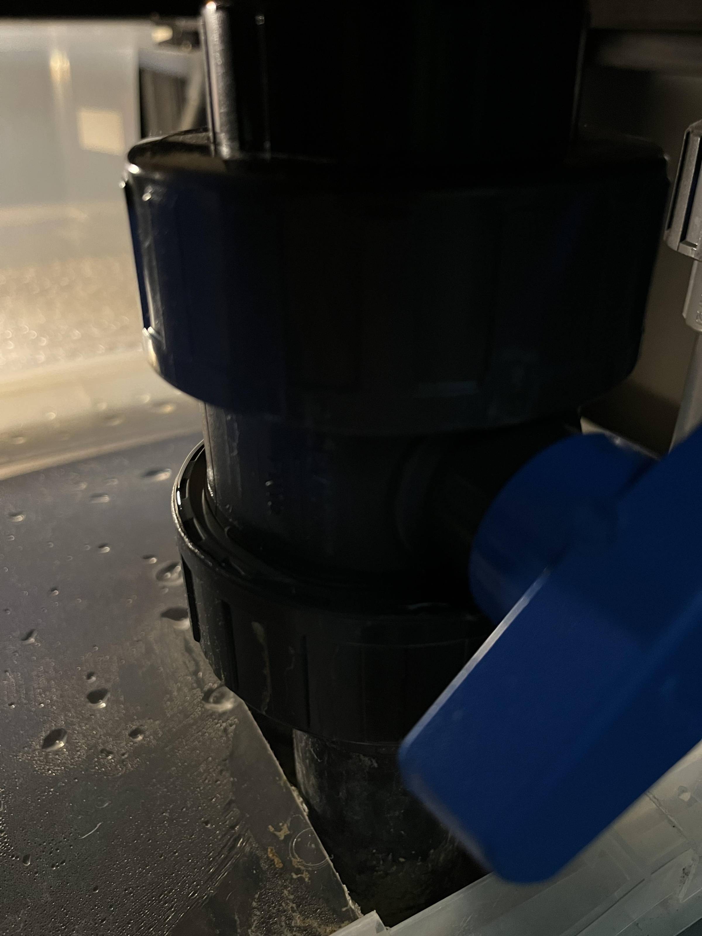 Hade liknande med en kran mellan huvudkaret och sumpen, byte oring mm men efter tag började den läcka igen. Byte mot en https://www.foretagsakvarium.se/webbutik/pvc-slang/membranventil-pvc-gf.html?#mz-expanded-view-617488426403