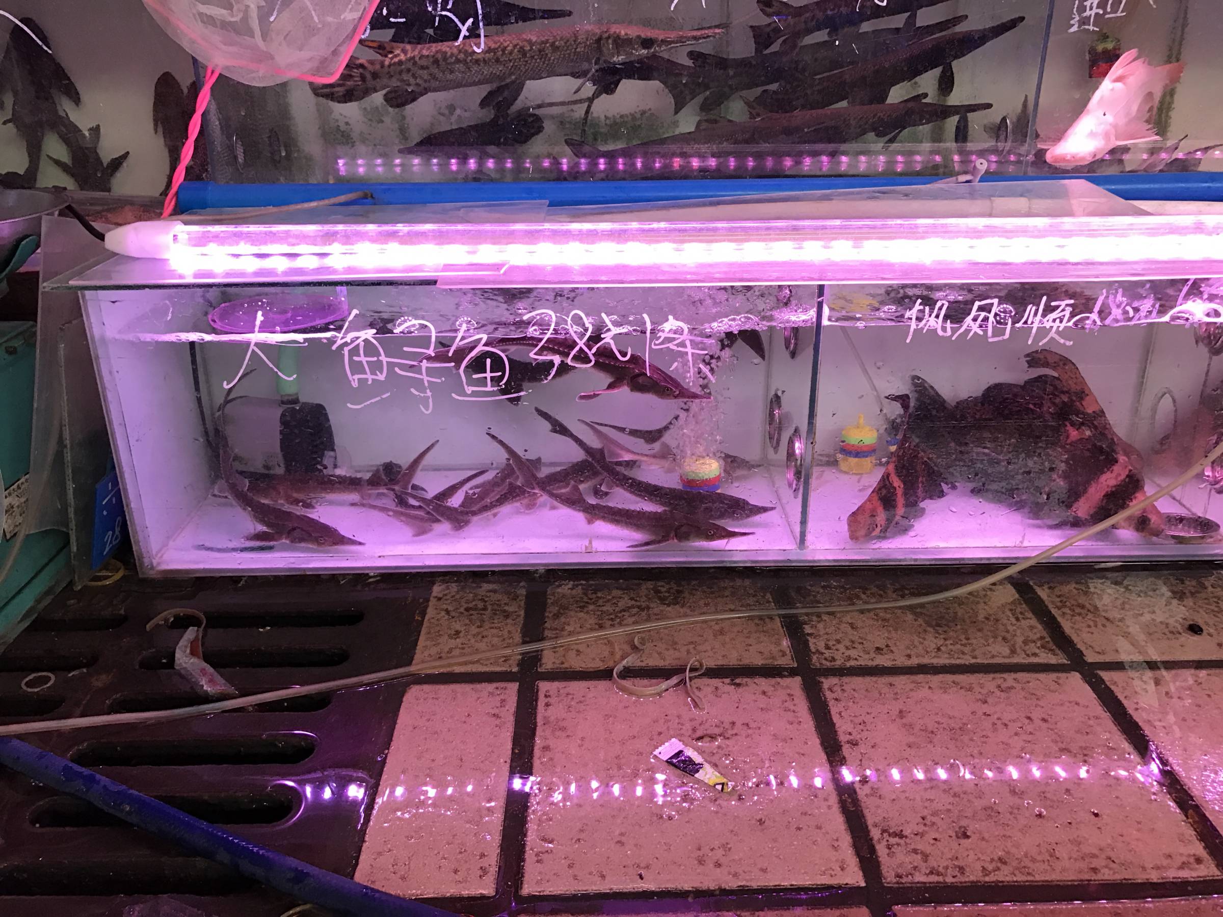Det är ju Kinas största fisk grossist marknad så det är mycket genomströmning av fisken, kan tänka mig att dom inte står så allt för länge .